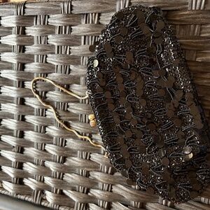 Classy Evening Black Beaded Mini Bag to use as a Clutch or chain. Retro style with a bit of “flapper”!