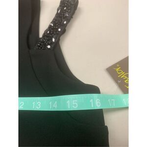 Ladies super cute black chiffon material beaded detail sleeveless Strappy cocktail style dress by Taylor. Excellent condition. Ladies size 4. New with tags.