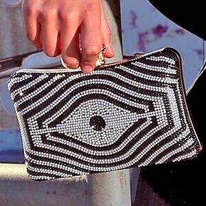 Black Beaded Rhinestone Crystal Embellished Clutch