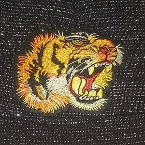 New Sparkling black cap with custom applied tiger patch! Folded up at bottom, acrylic blend comfortable and super stylin'! Men's or Women's.
