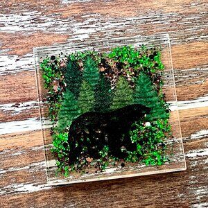 This set of 4 beautiful black bear inspired resin drink coasters is made with love by me! Use to protect table from drink rings and also doubles as a beautiful piece of art! Great for cabin!