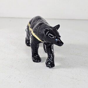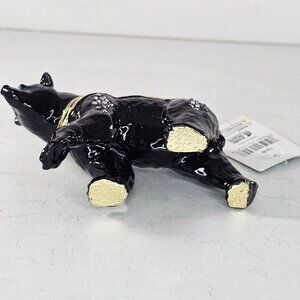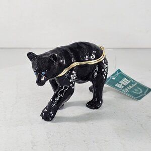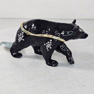 Black Bear Trinket Box Hinged Bejeweled Enameled Magnet Closure