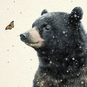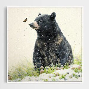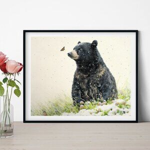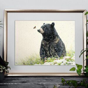 Black Bear with Butterfly Watercolor Oil Painting Print