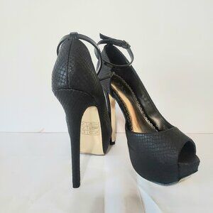 Black Bebe Adriana Ankle strap stiletto heels size 7 women's