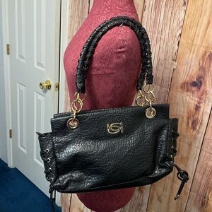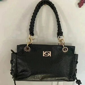 Black Bebe Shoulder Handbag with Silver Hardware Faux Crocodile Leather