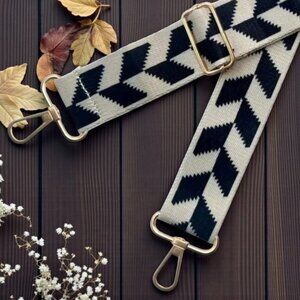 Upgrade your favorite bag with this stylish black and beige geometric print strap! π Featuring a modern chevron design, this adjustable strap provides both fashion and function. Easily clip onto your purse or crossbody with its sturdy gold-tone hooks. π―