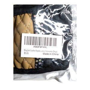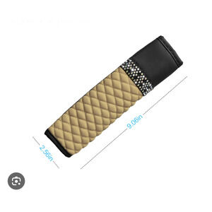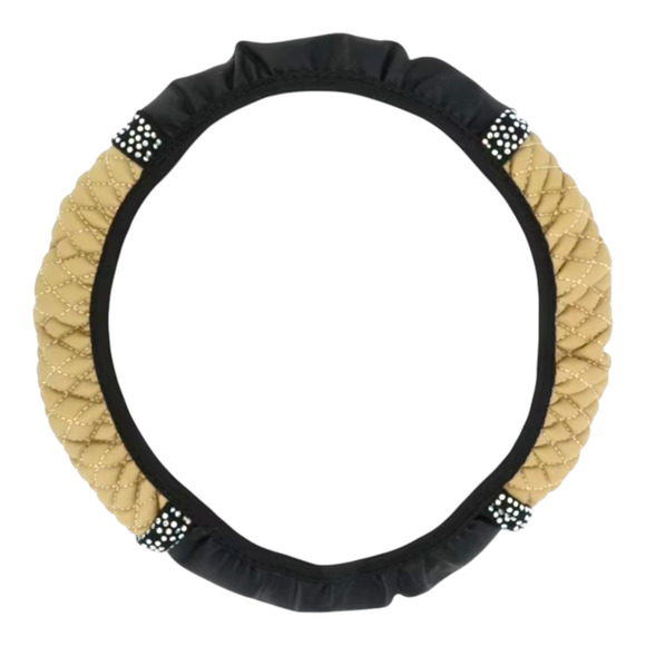 Black & Beige Faux Leather Bling Rhinestone Steering Wheel Cover 14.6"-15" New