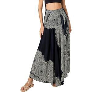 Black Beige Strapless Halter Multi-Way Boho Mandala Skirt Sundress OS