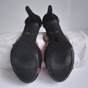 Black & Beige Suede Ankle Strap High Heel Platform Red Patent Peep Toe Sz 7M