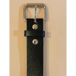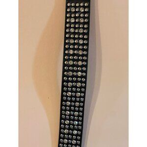 Black Belt With Rhinestone Studs Manmade Material Silver-Tone Buckle 47” Long