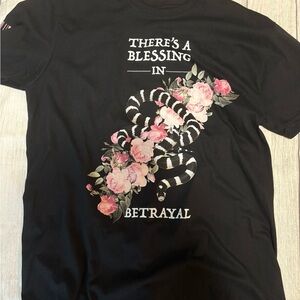 Black “Betrayal” Tee with Pink Snake Design in XL