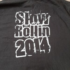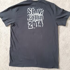 Pictured is a graphic t shirt from 2014 Daytona Bike Week. This tee is printed on the front and back. Slow Rollin 2014.