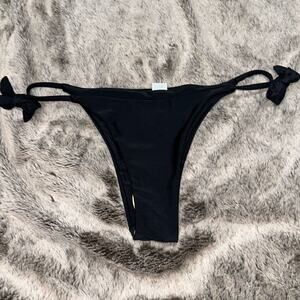 Add a touch of sleek simplicity to your swimwear collection with these black bikini bottoms. Featuring a cheeky cut and adjustable side ties, these bottoms are perfect for creating a customizable and flattering fit.