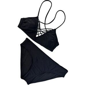 Black Bikini Set M Strappy Top Low-Rise Bottom Y2K Festival Swimwear Cool