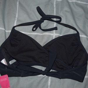 Small Black Crisscrossed bikini top with black gems on front. New with Tags, Never worn.