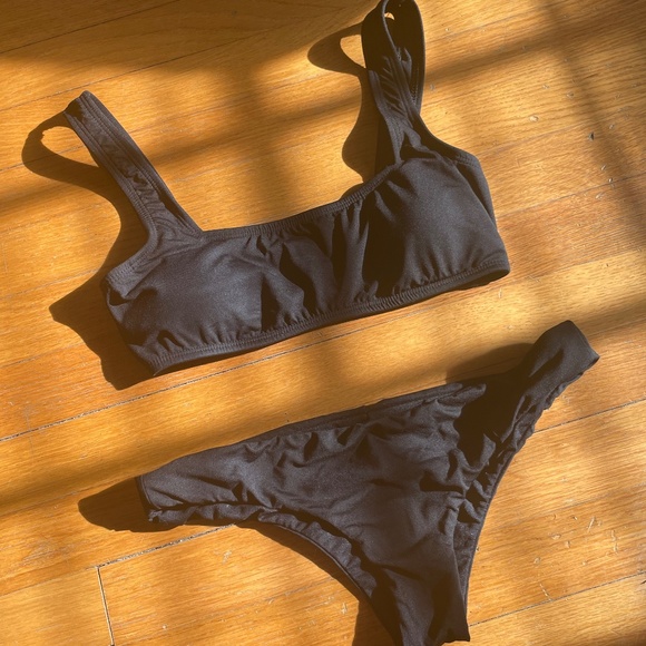 Black Billabong bikini set, both size XS/S. No tags on the inside but I typically wear a small on top and medium on the bottom and these both fit but are tighter than what I would normally wear. Fabric is in great condition, basically unworn. The top has removable pads and the bottoms are a cheeky cut. Let me know if you’re interested in purchasing only one of the pieces, happy to sell separately as well!