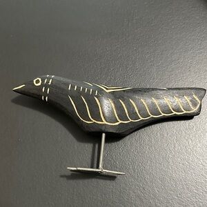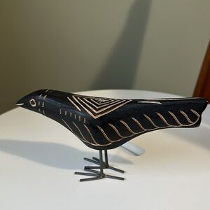 Black Bird Carving Painted Black Silver Toned Metal Legs