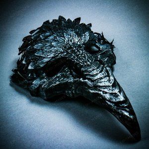 Black Bird Curved Nose Feather Plague Doctor Mask