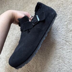 Black Birkenstock London Shearling in size 42. Size 42 is equivalent to size 11-11.5 for women and 9-9.5 in men, according to the Birkenstock website. They’re just way too big for me and too small for my partner. They need a new home that will use this perfect, comfy pair of Birkenstocks. Originally cost $200.