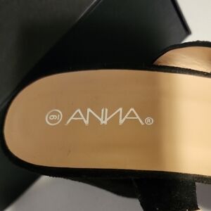 These black heeled mules feature a sophisticated design with two wide suede straps and a chunky block heel. The open back slip-on style and comfortable footbed make them perfect for both casual and dressier occasions. #74