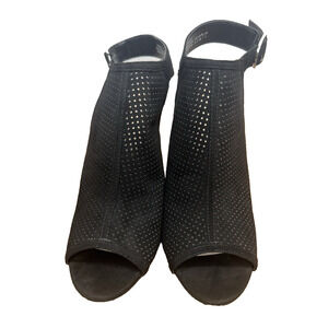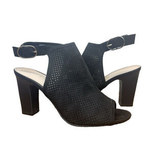Black Block Heel Sandals Ankle Strap Womens Sz 9 Perforated Peep Toe Kelly&Katie