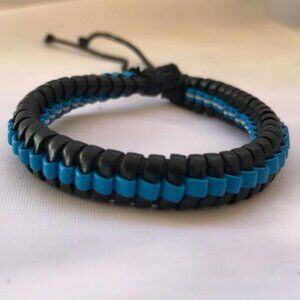 Black & Blue Braided Leather Handmade Bracelet Adjustable Wristband