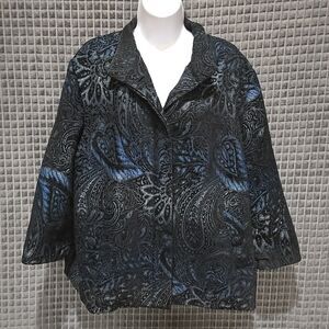Black Blue Paisley Blazer Jacket Chicos3 FitsL Button Boho Goth Glam Rock Witchy