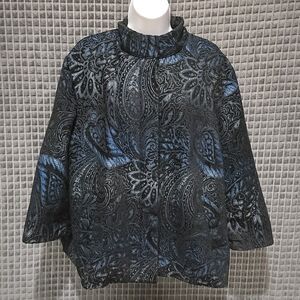 Black Blue Paisley Blazer Jacket Chicos3 Fits L Button Boho Goth Glam Rock Witchy