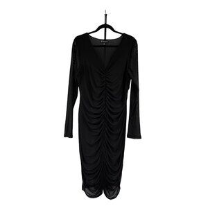 Black Bodycon Cocktail & Party Dress Size XL INC. V Neck, ruched mesh.