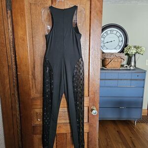 Black Bodysuit Lingerie Set Sheer & Solid Mesh Size Medium NEW Sexy Polka Dots