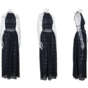 Step out in style with this elegant black halter maxi dress. Perfect for any occasion, this dress offers a sophisticated look with its flowing design. Ideal for those who love a touch of elegance in their wardrobe.