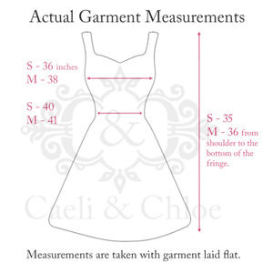 @acucyra Pit to pit /bust on M is 19 inches which is 38 unstretched. It has an A-line which flares from the bust going down - midsection is 20.5. Length from shoulder to beginning of fringe is 32 inches. The total length is 36 inches measured from shoulder to bottom hem which is the tip of the fringe. I am sold out of the black in L. Sorry for the delayed response and thank you for inquiring!