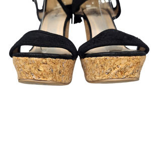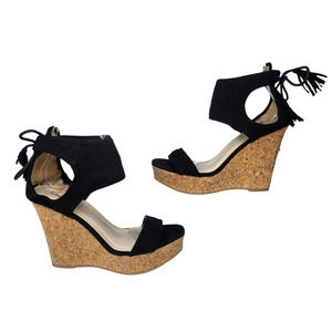 Black Boho Wedge Heels Womens 7.5 Platform Tassel Peep Toe Dressy Evening