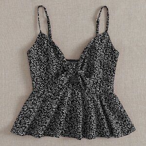 Black Boho Womens Knot Front Allover Plants Cami Top