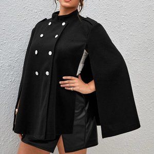 Black Boho Womens Plus Double Breasted Cloak Sleeve Overcoat