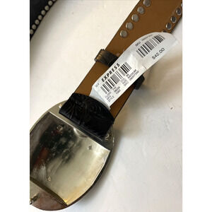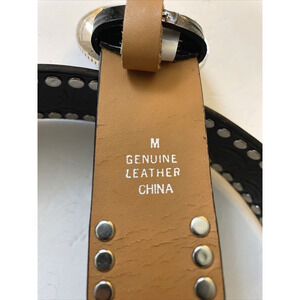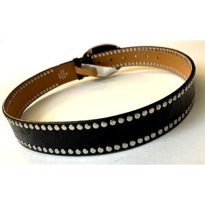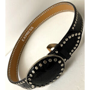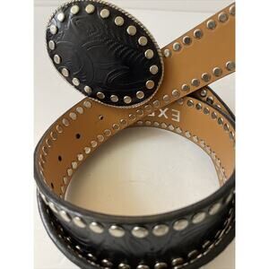 Black Bojo Express Leather Tooled Flowers all over Belt Silver Tone Studs 33.5"