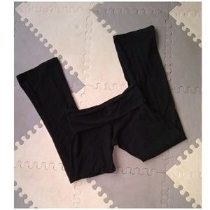 Boot cut, cropped workout/yoga pants with gold over waist.