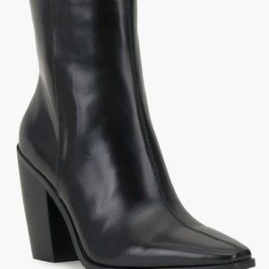 Worn once for about 2 hrs. Size 7. 3 1/2" heel. Leather upper/synthetic lining/rubber sole. A squared-off toe and stacked block heel balance a rich leather bootie that will complement your polished style. Originally paid $169 for them.