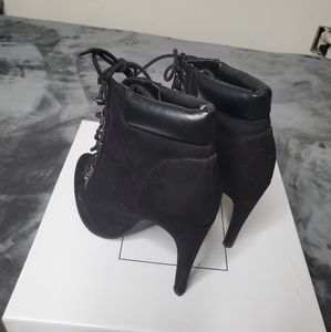 Super sexy booties, size 8.5. Toe point with laces. Comfy ankle cushion. Like new, wore once. Not a big heels gal.