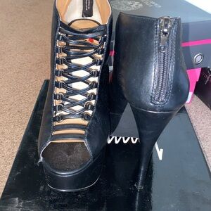 Black leather platform booties in great condition no rips on the leather w/b. 6in