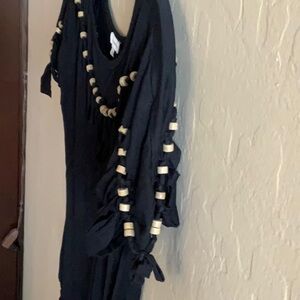 Cute Boston Proper black XS top. Short sleeve with cut out neckline and small ties on the sleeve. Length 27” makes it long enough to cover the buttocks. Pit to pit 17.5. Stretchy fabric.