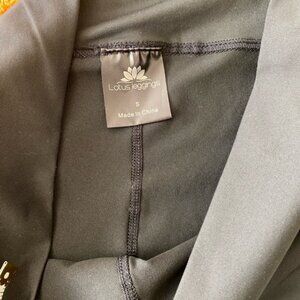 Comfortable and stylish black leggings by Lotus Leggings. Perfect for dance practice. Tie wrap around leg.