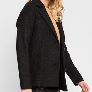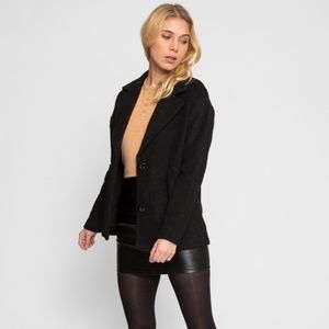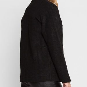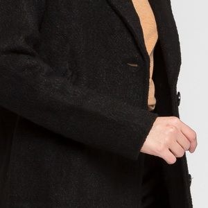 Black oversized coat in textured fabric with notch lapels, hidden front pockets and long sleeves. Fully lined, opaque.