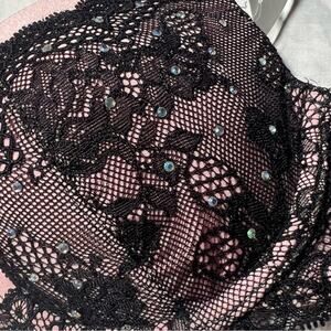NWT Black Bow Satin and Lace Gel Push Up Bra with Rhinestones