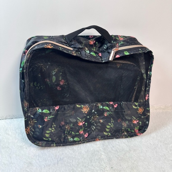 This travel bag is crafted from a sturdy fabric, ensuring it maintains its boxy shape for efficient packing. Its sleek black design makes it a versatile choice for any journey, combining practicality with a modern aesthetic. ( Three in the pack)