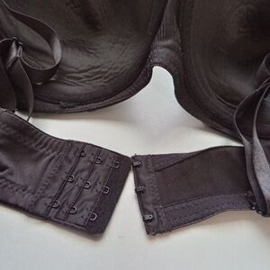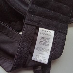 Unbranded black bra 42C hook and eye closure adjustable straps. Made of 95% polyester 5% spandex and hand wash
