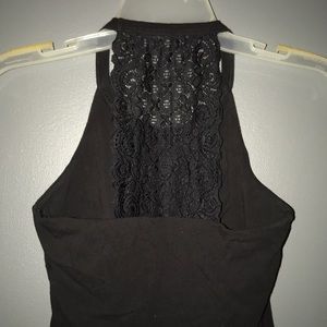 This black tank top comes with a bra attached to the shirt! Fits tightly. Lace on the upper back part of the shirt🖤.