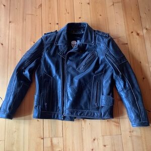 Black Brand Leather Motorcycle jacket with zip in liner