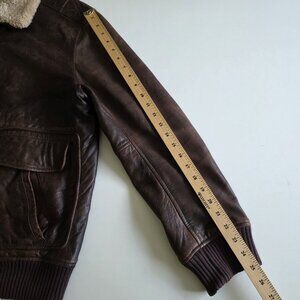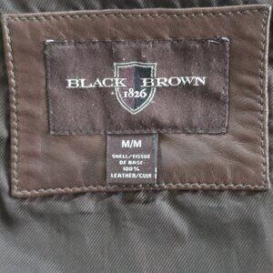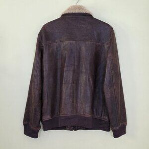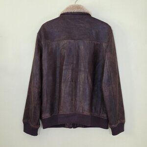 Black Brown 1826 Leather Jacket Men M Brown LS Aviator Shearling Collar Full Zip