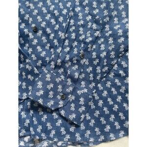 Fun perfect shirt for spring and summertime thats made of 100% linen and has a denim blue background with white palm tree print. Perfect shirt for vacation, the islands are just if you feeling beachy. Large with a 24 1/2 inch chest, 26 inch arms and is 29 inches in total length. Brand new with tags. Comes from a smoke-free home.
